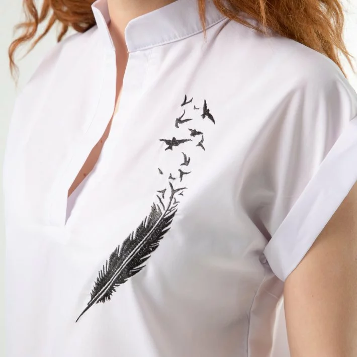 Біла блуза "Перо і Птахи" 230154, 44 (230154)