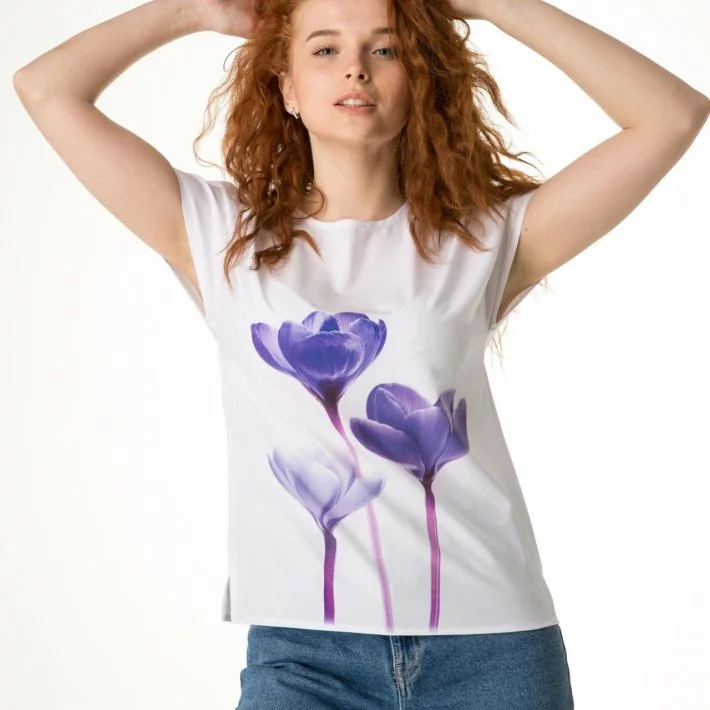 Біла блуза блакитні Крокуси 230137-1, 64/66 (230137-1s6466)