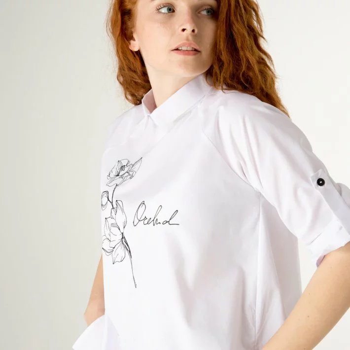Белоснежная рубашка с дизайнерской вышивкой, свободная, с
