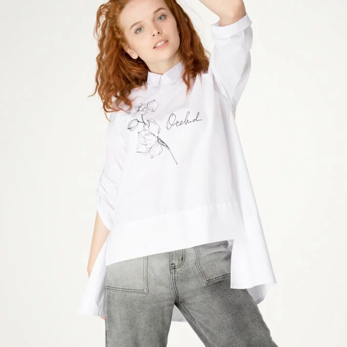 Белоснежная рубашка с дизайнерской вышивкой, свободная, с