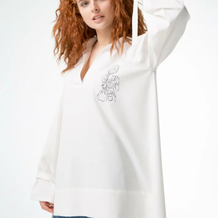 грудях стильна вишивка. Блуза виконана з натурального тіару.