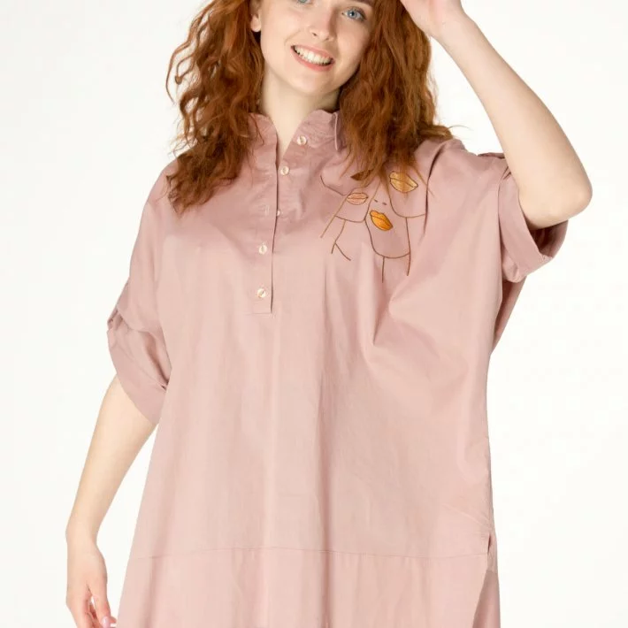 горловина комір-стійка. Декорована оригінальною вишивкою в нюдових