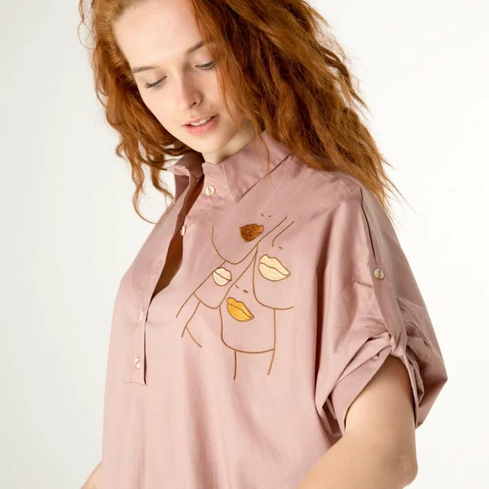 Бежева блузка з вишивкою "Губи" 230165, 56/58 (230165s5658)