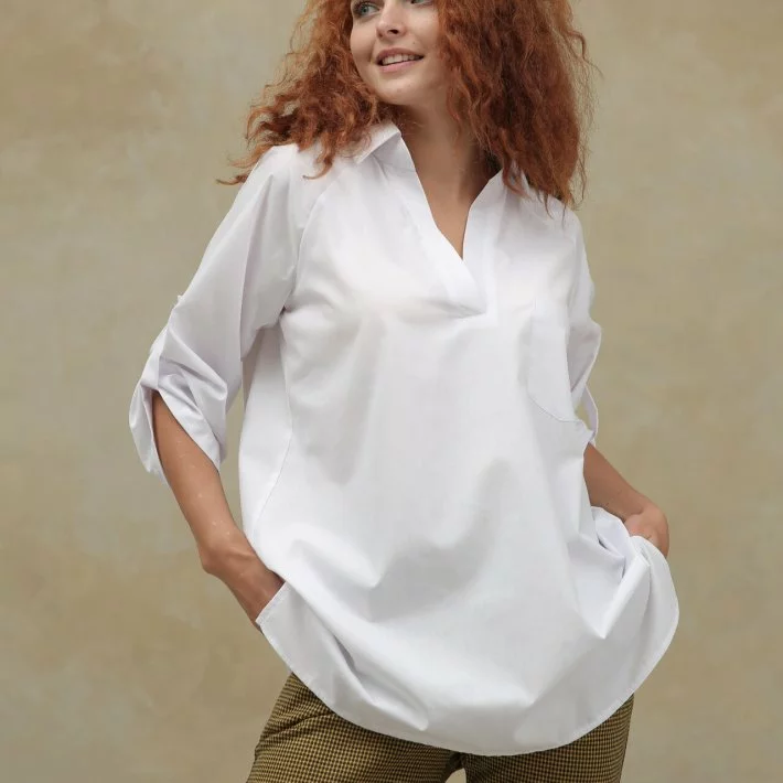 Блуза - туніка з рукавом реглан 3/4 на хлястику. Попереду зроблено