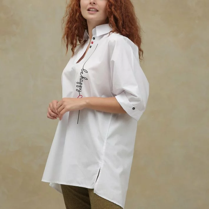 Супер оперсайз сорочка з бавовняної натуральної тканини, рукав 3/4