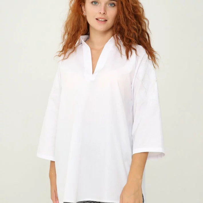 Сорочка рукав реглан із вишивкою по рукаву молочного кольору. Без