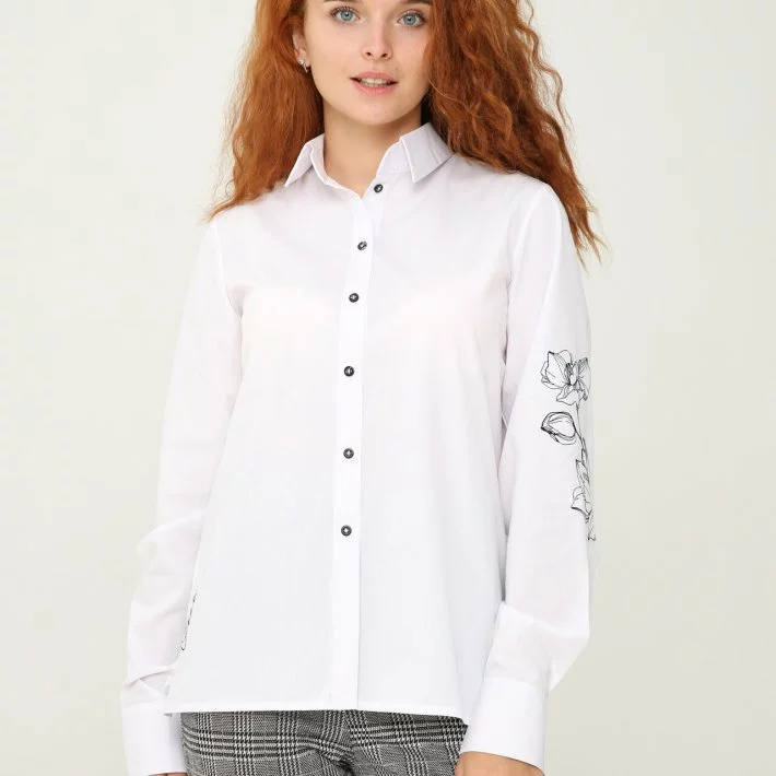 Біла сорочка з вишивкою "Орхідея" 230201-1, 44 (230201-1s44)