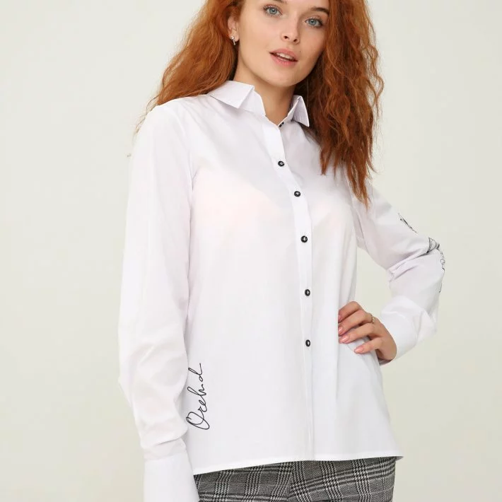 Класична сорочка з чорними гудзиками прямого крою на довгому рукаві