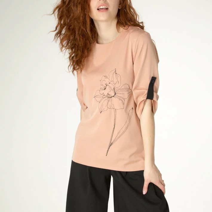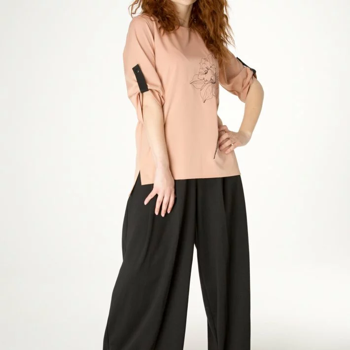 Оригінального крою блузка, попереду вишивка, позаду функціональна