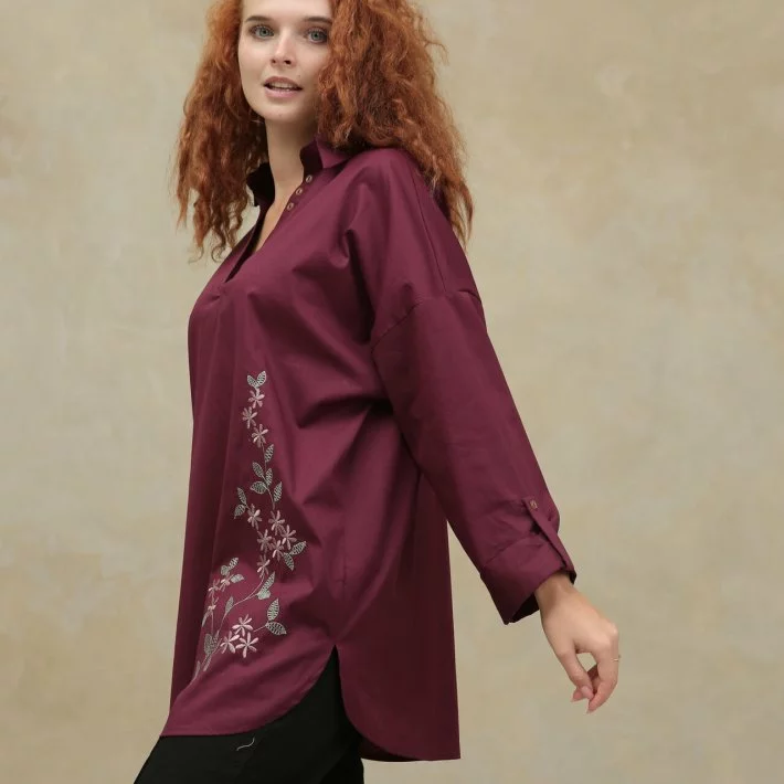 Довгий рукав, плавні лінії низу роблять туніку особливо жіночною.