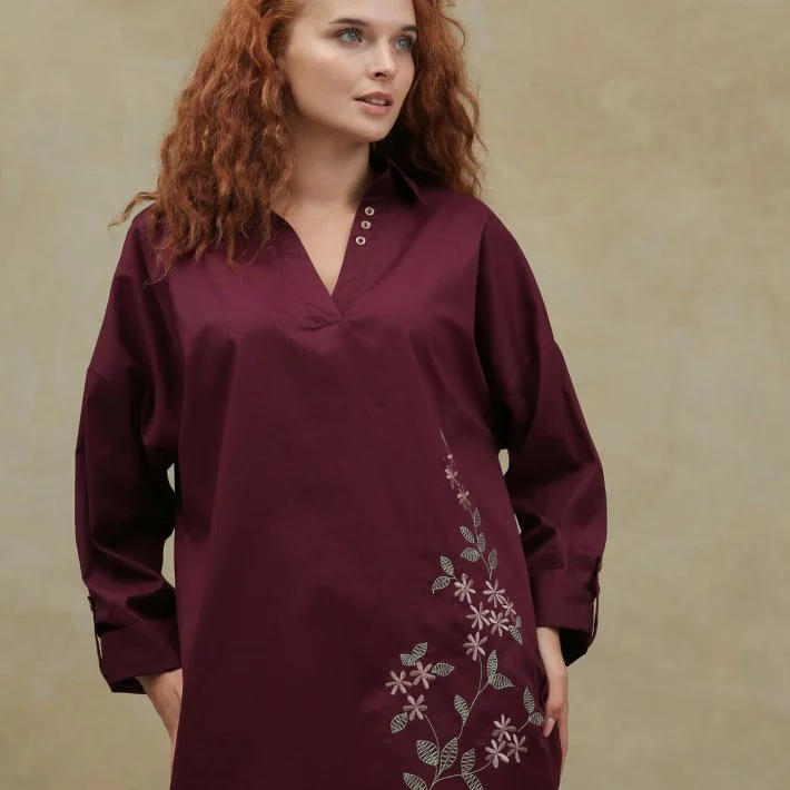 Довгий рукав, плавні лінії низу роблять туніку особливо жіночною.