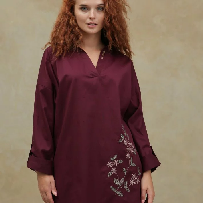 Довгий рукав, плавні лінії низу роблять туніку особливо жіночною.