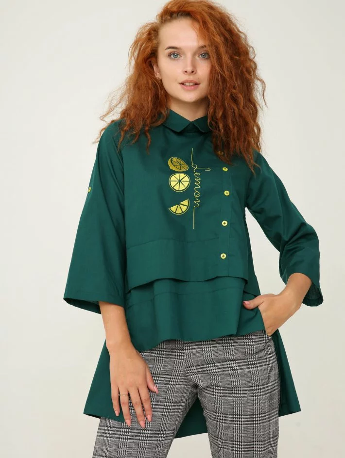 Блуза - туніка з асиментричним передом та оригінальною подовженою