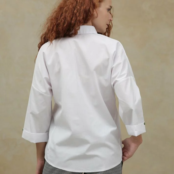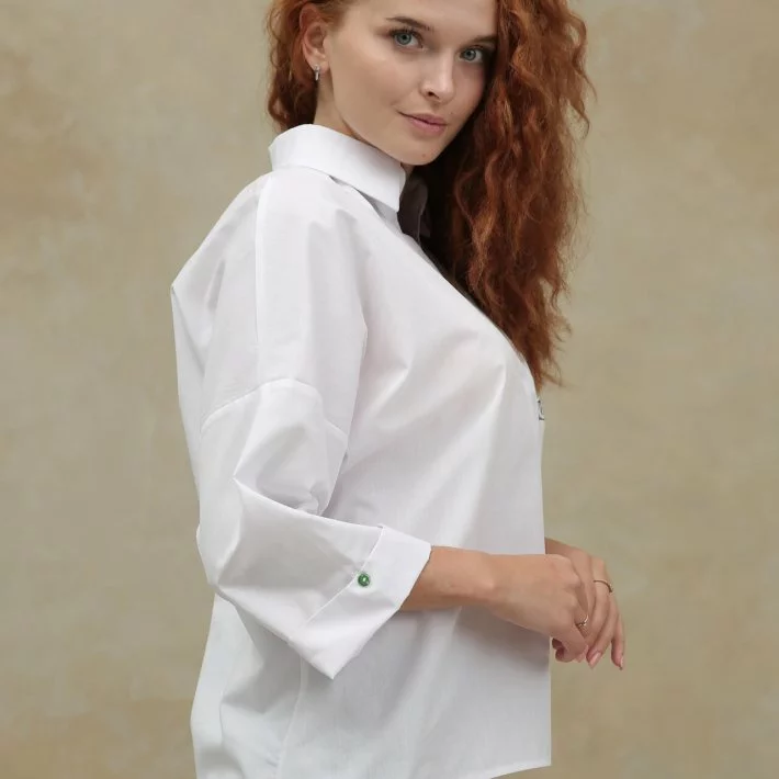 Блузка зі зміщеним бічним швом, акуратним згином низу. Рукав на