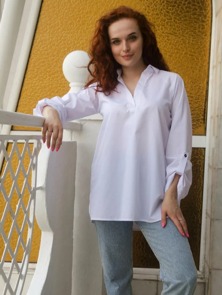 хлястиці. Блуза з V-подібним вирізом по горловині, оформлена