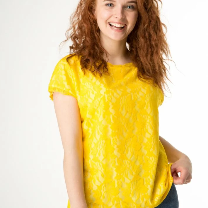 Блуза виконана з легкого мережива модних кольорів. Попереду, для