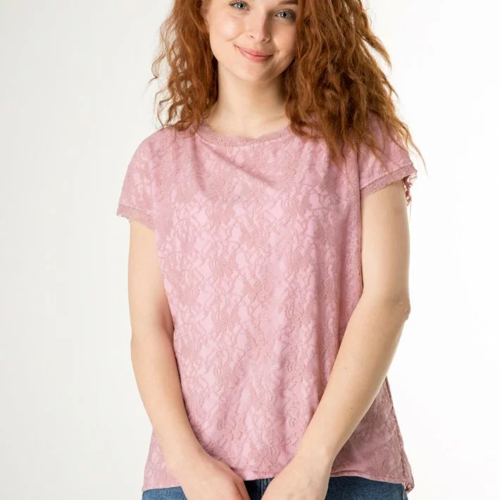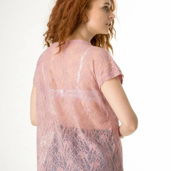 Блузка виконана з легкого мережива модних кольорів. Спереду, для
