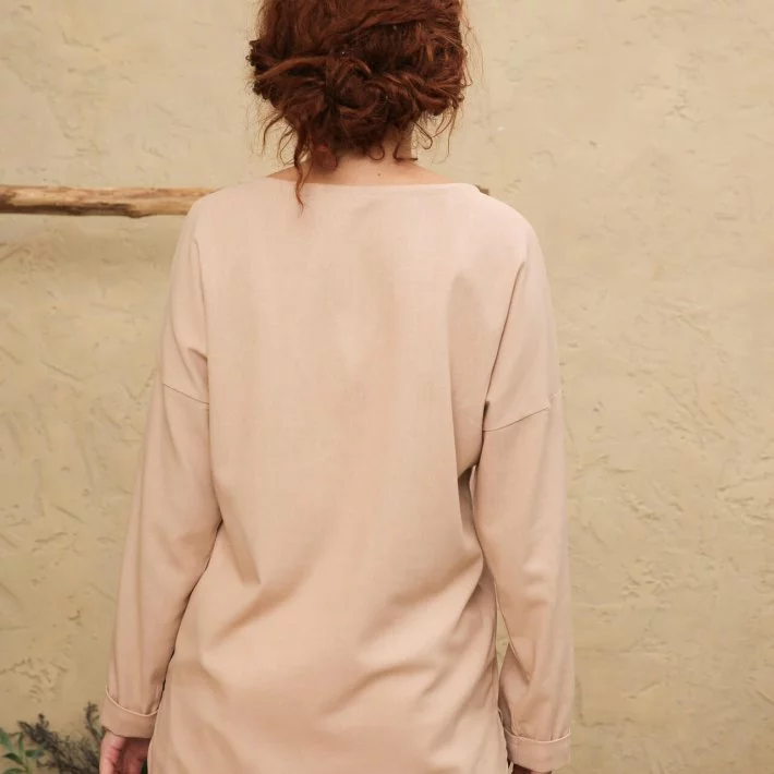 Блузка з льону без застібок, зі спущеною лінією плеча, оверсайз