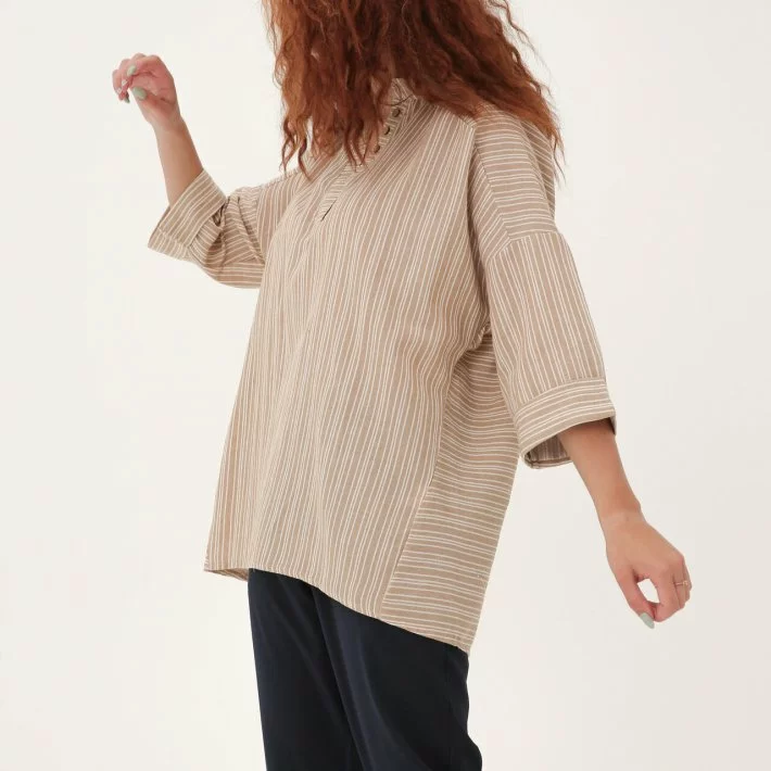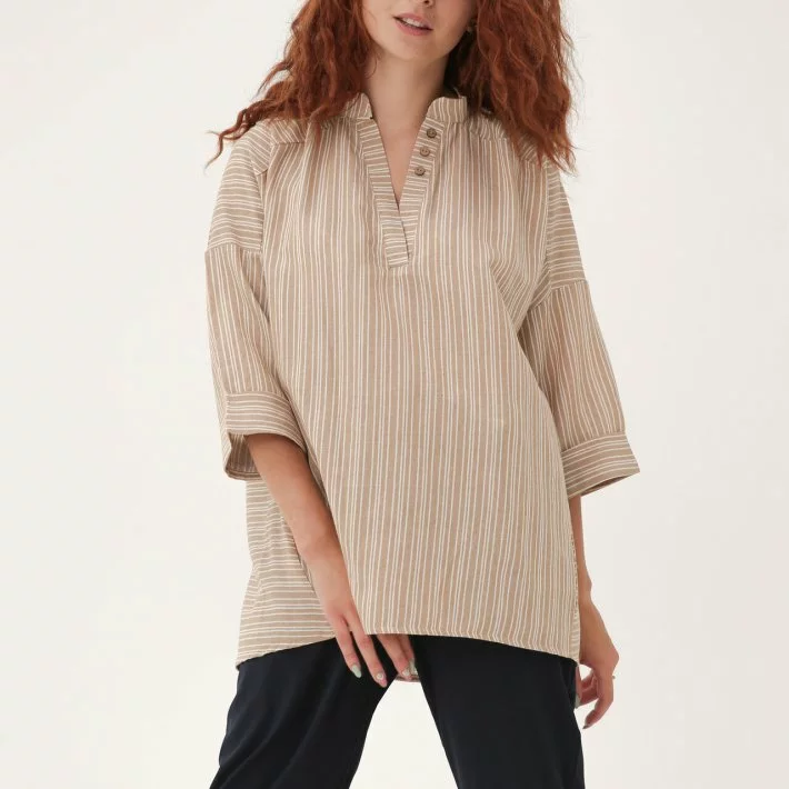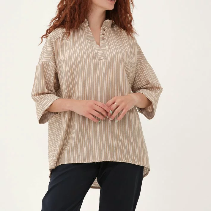 Бежева Лляна блуза в дрібну смужку 230181-2, 60/62 (230181-2)
