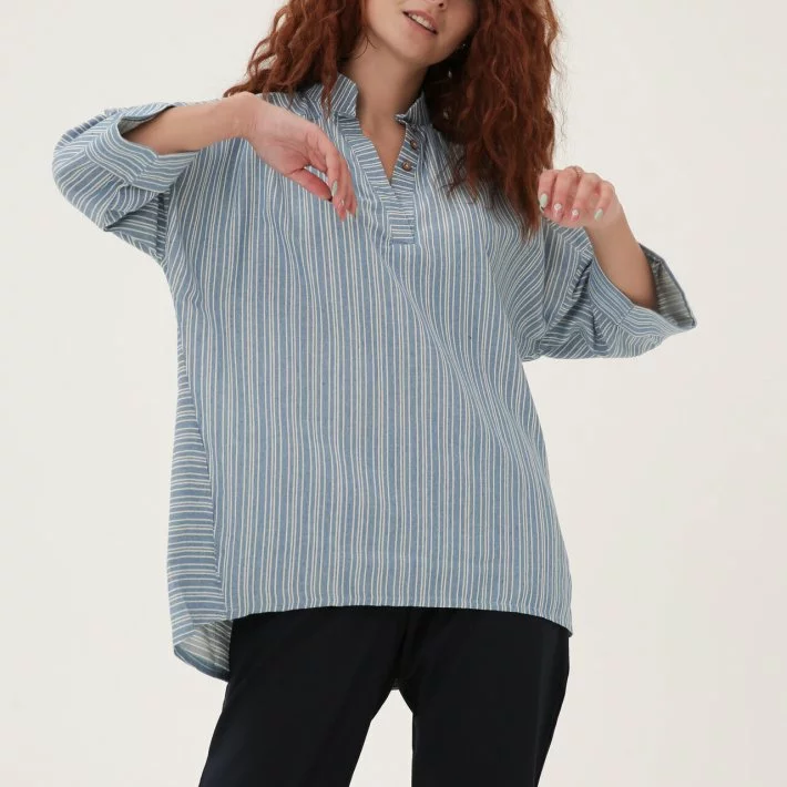 Блакитна лляна блуза в дрібну смужку 230181-1, 52/54 (230181-1s5254)