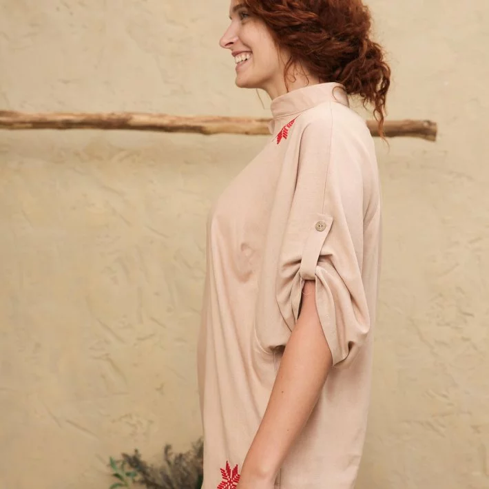 Ллняна блуза з незвичайним кроєм та вишивкою-символом зв'язку людини з космосом, 60/62 (5550199-1s6062)