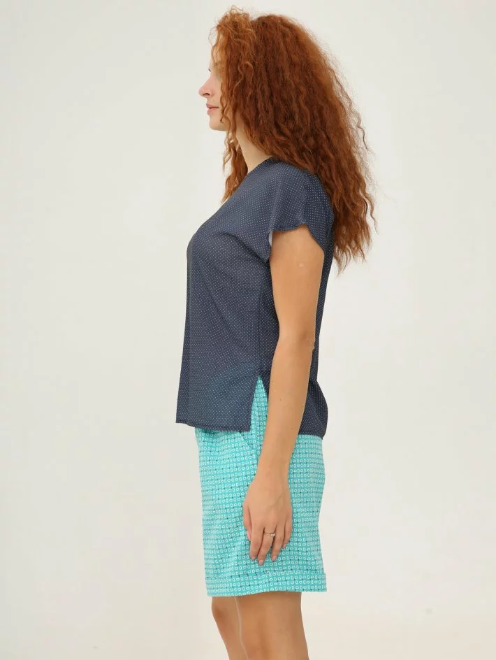ґудзичок. Вільна та легка. Тканина не тягнеться. При пранні не дає