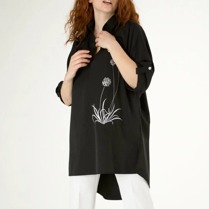 Чорна тіарова блуза-туніка 230166-2, 60/62 (230166-2s6062)