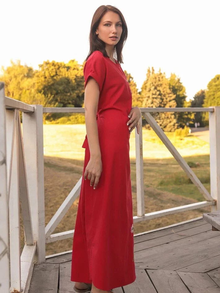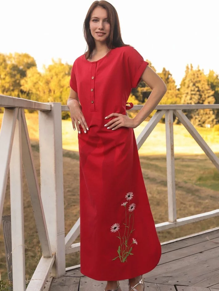 Червона довга сукня із льону "Ромашки" 270184-3, 44/46 (270184-3)