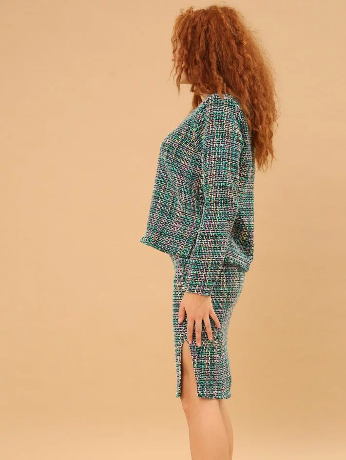 Костюм з вовняного твіду: кофта з красивою змійкою ззаду, круглою