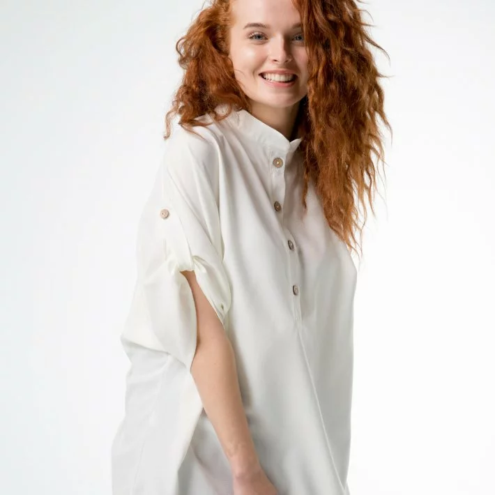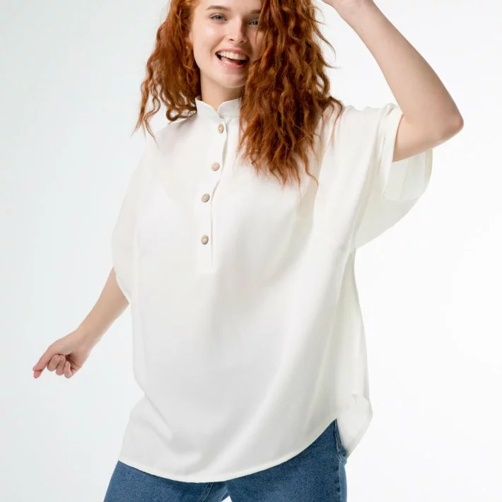 Блузка из искусственного льна с пуговицами из натурального