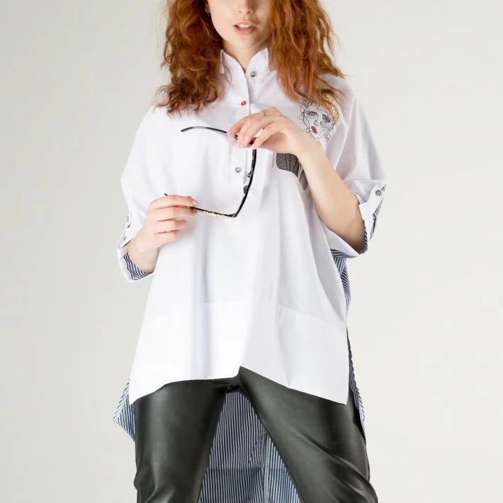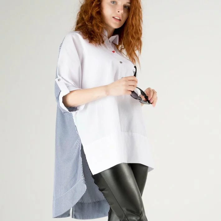 смугастої рубашечной тканини. Оригінальна і яскрава туніка не