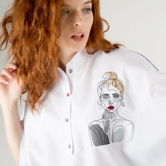 Авторська робота: блузка-туніка з вишивкою, підібраними в тон