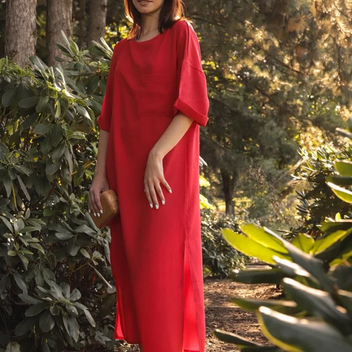Довга червона сукня-футболка 2701100, 44/46 (2701100s4446)