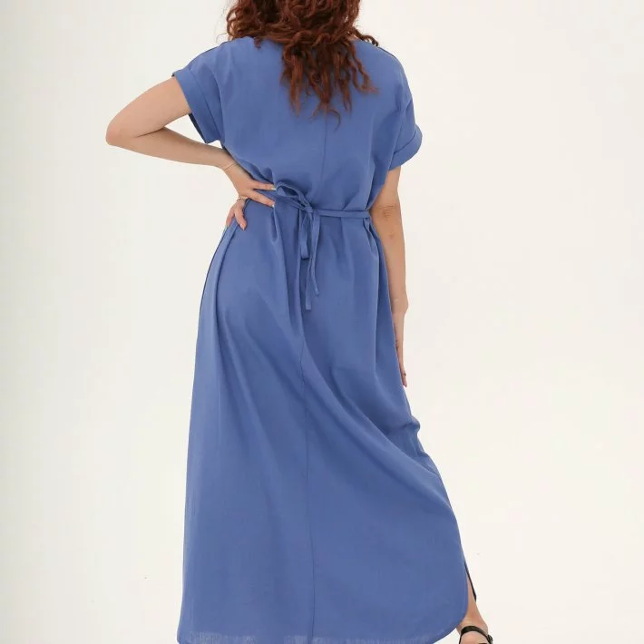 Синя довга сукня із льону "Ромашки" 270184-1, 56/58 (270184-3s5658)