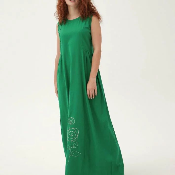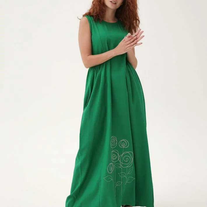 Довга лляна сукня із вишивкою "Троянди" 270189, 56 (270189s56)