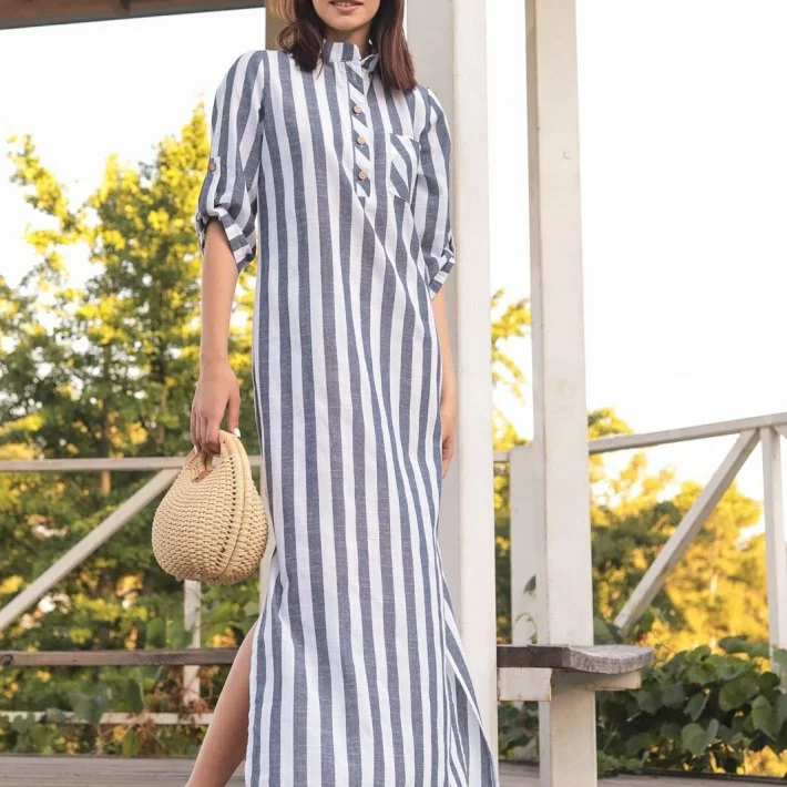 Довга сукня-сорочка з льону, в смужку 270192, 44/46 (270192s4446)