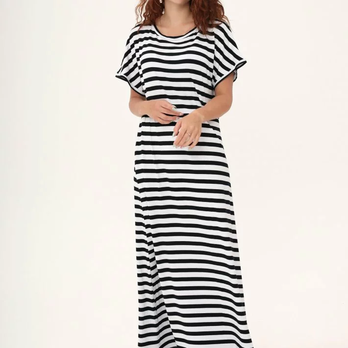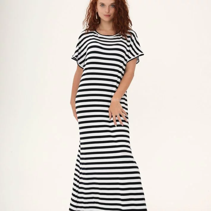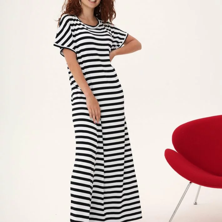 Довга трикотажна сукня-футболка в смужку 270360-1, 52/54 (270360-1s5254)