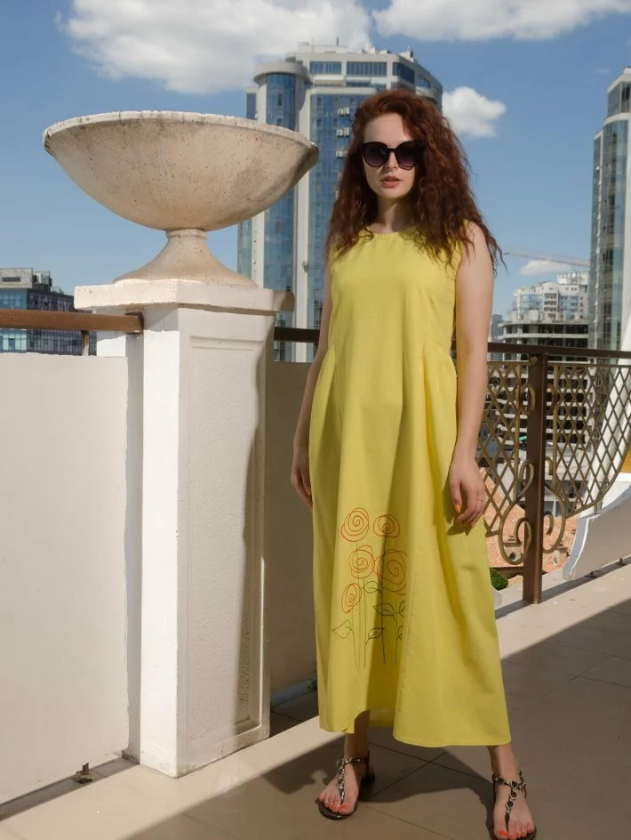 Довга лляна сукня із вишивкою "Троянди" 270189-3, 46 (270189-3)