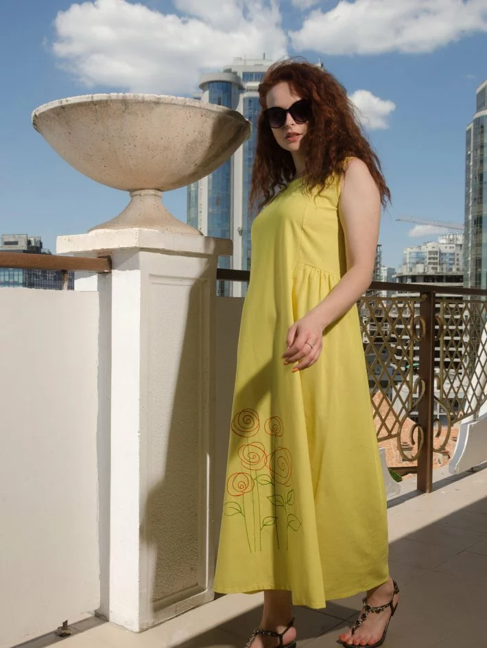 Довга лляна сукня із вишивкою "Троянди" 270189-3, 60 (270189-3)