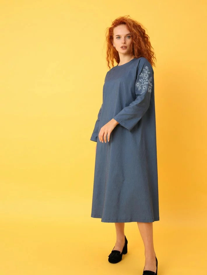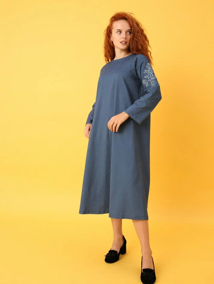 Джинсова сукня з вишивкою по рукаву 270392, 48/50 (270392s4850)
