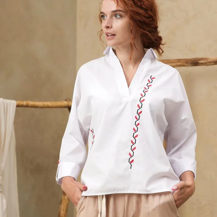 на манжеті. Блуза оформлена класичною Української вишивкою "Зигзаги