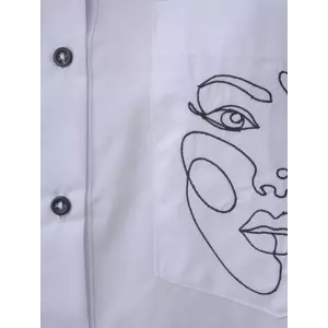 Класична біла сорочка оформлена чорними гудзиками та кишенею