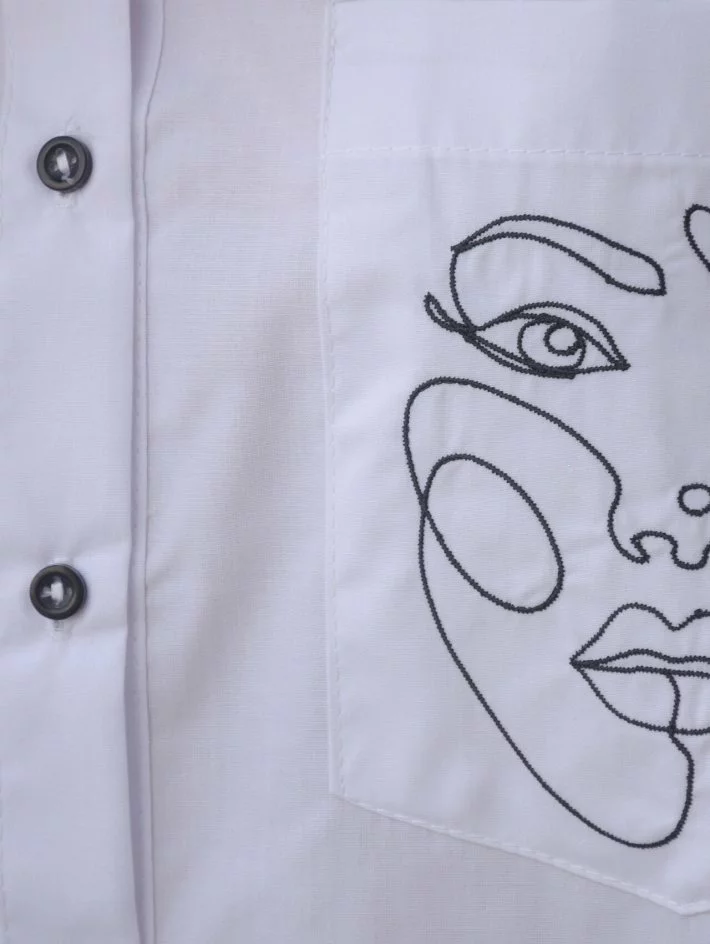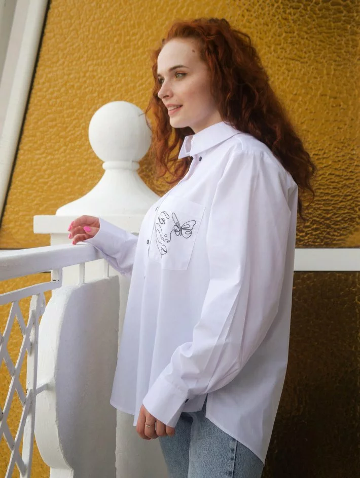 з вишивкою. Тканина – сорочкова бавовна. Сорочка має силует