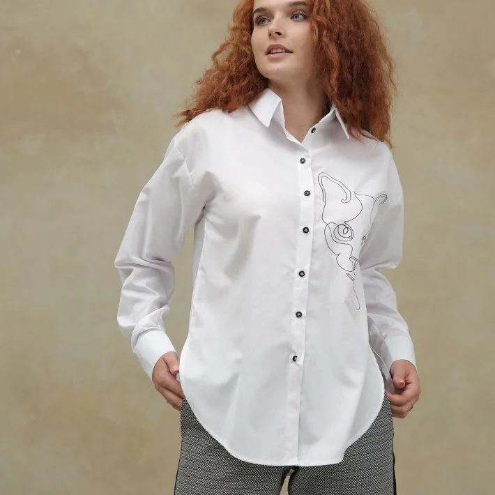 Класична блуза з вишивкою мордочки кота 230190-1, 58 (230190-1s56)