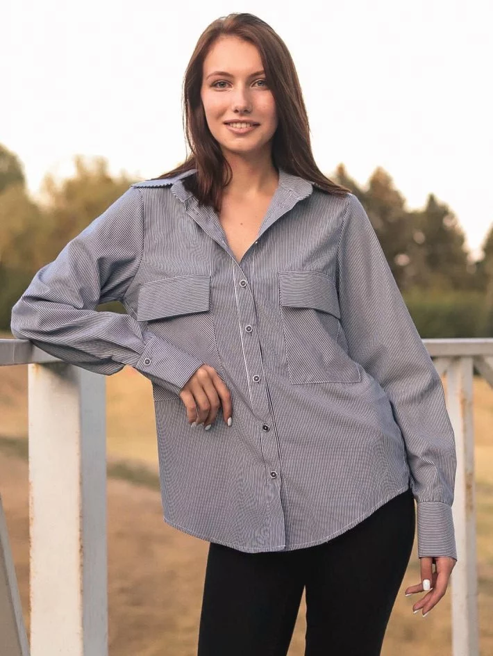 Сорочка класичного крою з тканини в дрібну смужку, вільної посадки,