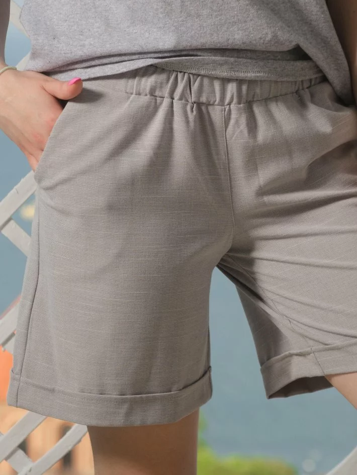 Сірі шорти з бенгаліну, тканини, що не тягнеться. З кишенями збоку