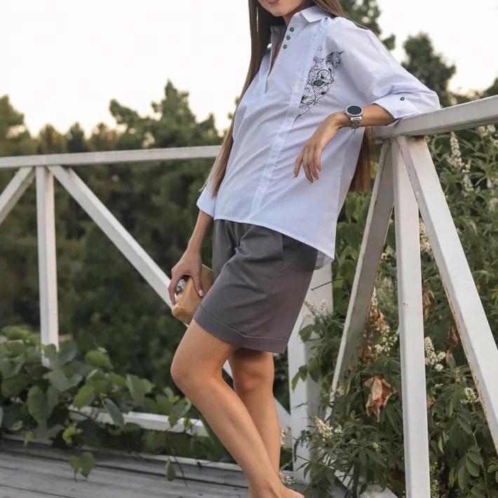 Класична біла сорочка з вишивкою "Рись" 230132, 48/50 (230132s4850)