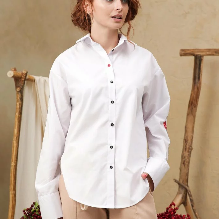 Класична бавовняна сорочка-оверсайз з символом чисти думок та процвітання, 60/62 (5550195-2s6062)