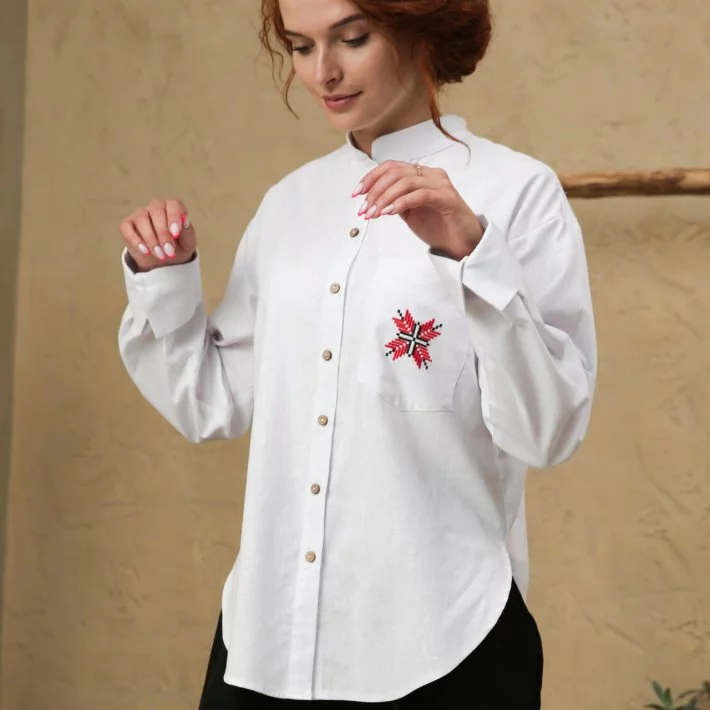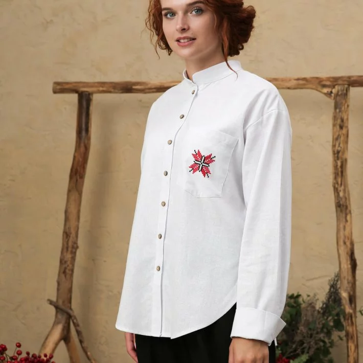 Класична лляна сорочка-оверсайз з зіркою Пресвятої Богородиці, 44/46 (5550189-2s4446)