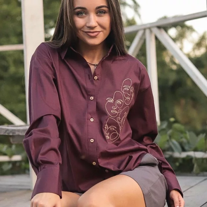 Класична сорочка в бордовому кольорі, оздоблена вишивкою.